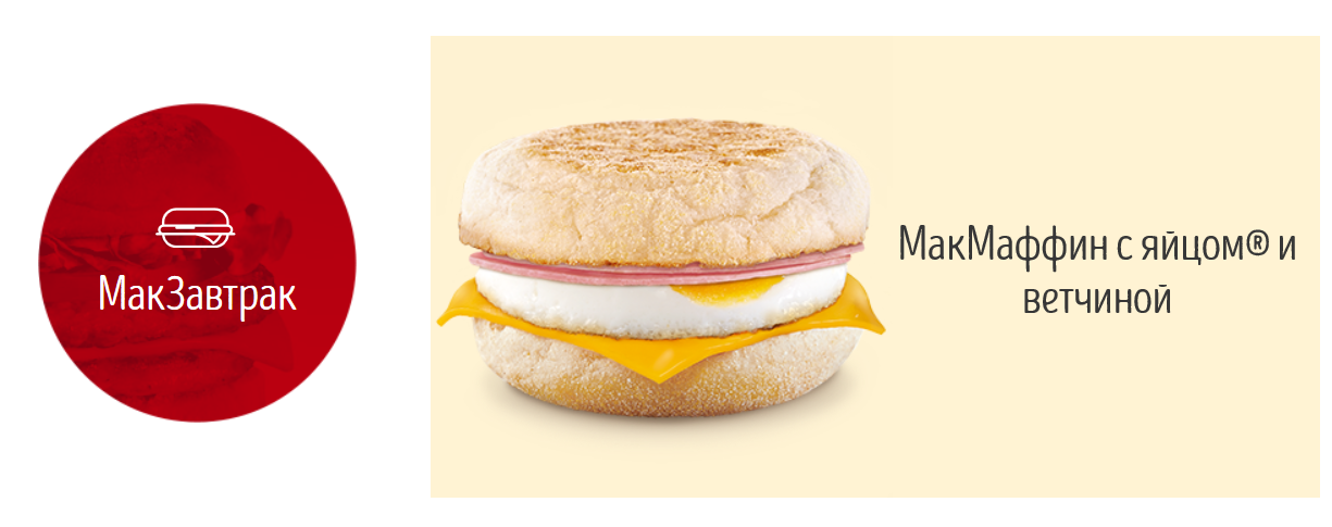 Для того, чтобы хорошо себя чувствовать на протяжении всего дня, в ресторане представлено специальный набор продуктов. Этим предложением можно воспользоваться только в определённое время. В макзавтрак меню входит та еда, которая будет идеальной для утреннего приёма пищи.