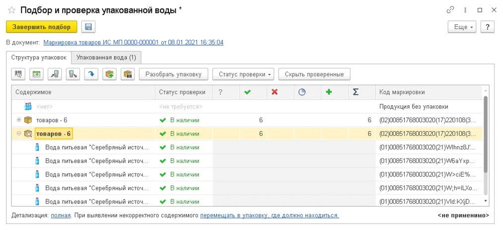 Когда подбор и проверка всех товаров произведены, документ направляется в систему «Честный знак», чтобы ввести продукцию в оборот. Если указана информация о групповых упаковках, то также нужно дополнительно провести агрегацию.