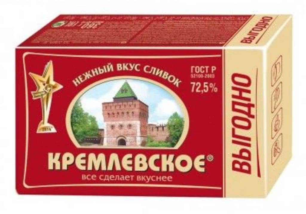 «Кремлевское» актуальной жирности 82% — это качественный продукт по доступной цене для тех, кто рационально подходит к выбору продуктов и заботится об их качестве и вкусе. Классический сливочный вкус «Кремлевское» — это достойное качество по разумной цене, польза растительных масел и вкус!