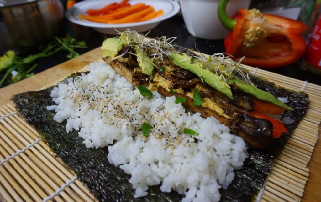 Идея для роллов: начинка из тофу, баклажанов и авокадо, обжаренных на гриле