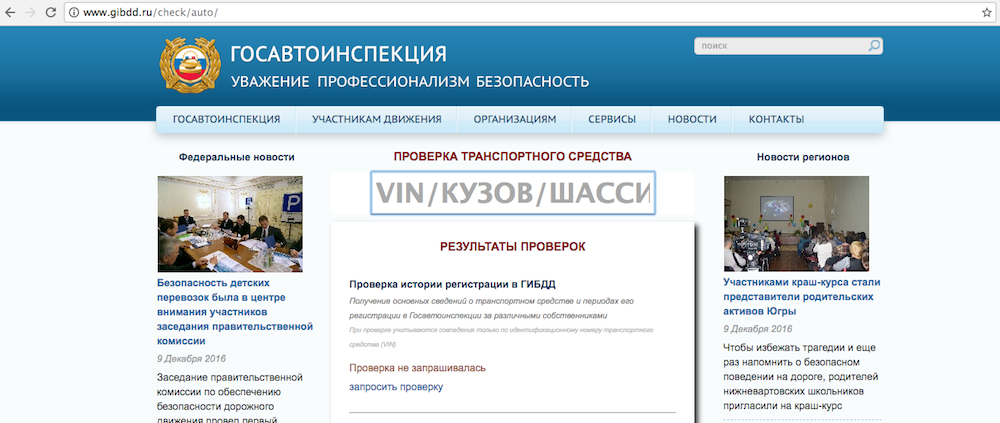 Проверка автомобиля через сайт ГИБДД