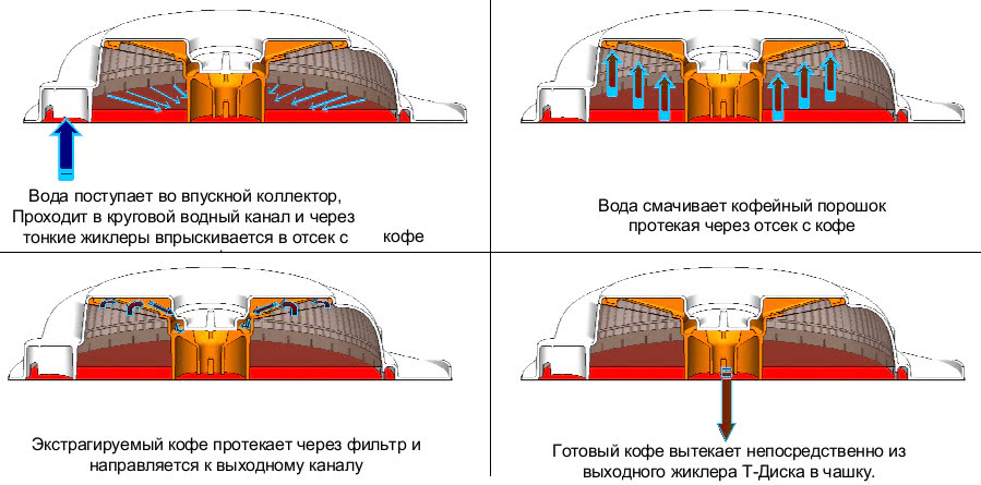 В обычную кофемашину нужно засыпать молотый кофе или в зернах. Капсула загружается внутрь машины, где ее прокалывает насквозь игла. Через получившееся в капсуле отверстие проходит кипяток, заваривающий напиток.