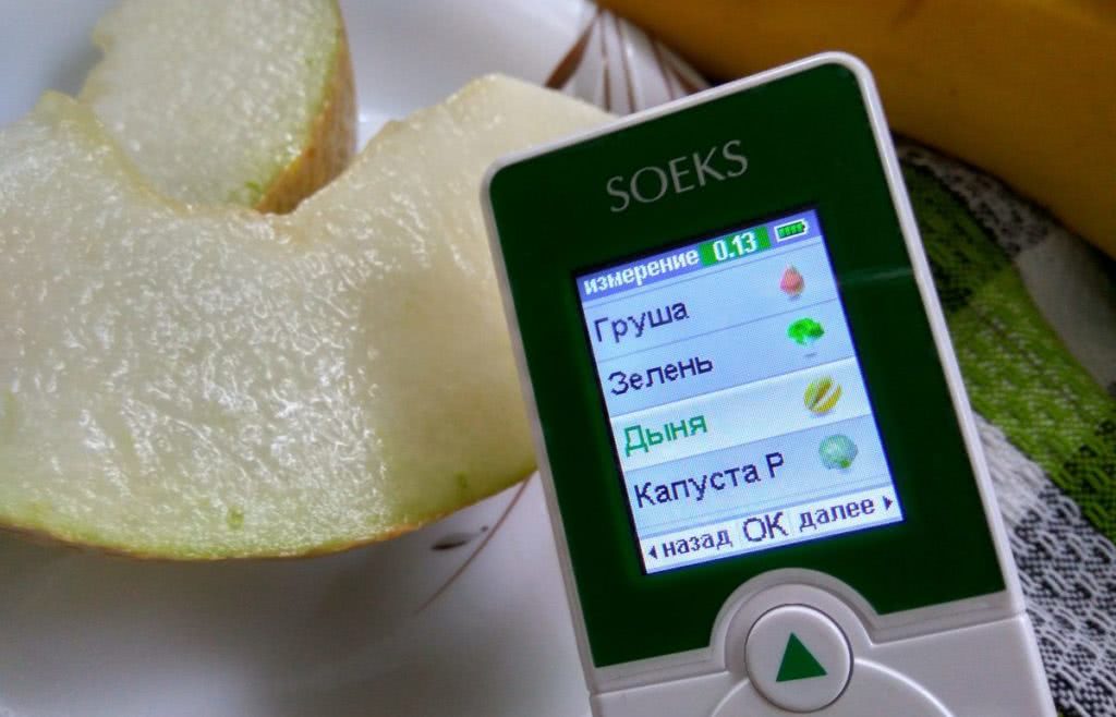 Прибор последнего поколения предназначен для проверки нитратов во фруктах и овощах. Анализ осуществляется зондом. Плод прокалывается и на дисплее появляется результат. Цифры обозначают реальное содержание нитратов, а надпись говорит о безопасности продукта.