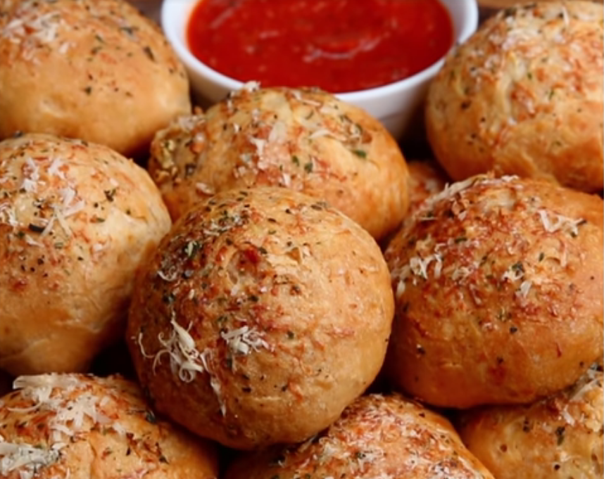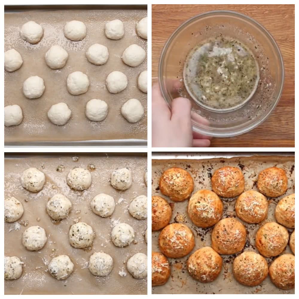 Посыпьте шарики тертым пармезаном. Выпекайте в разогретой духовке при температуре 190℃ 15-20 минут.