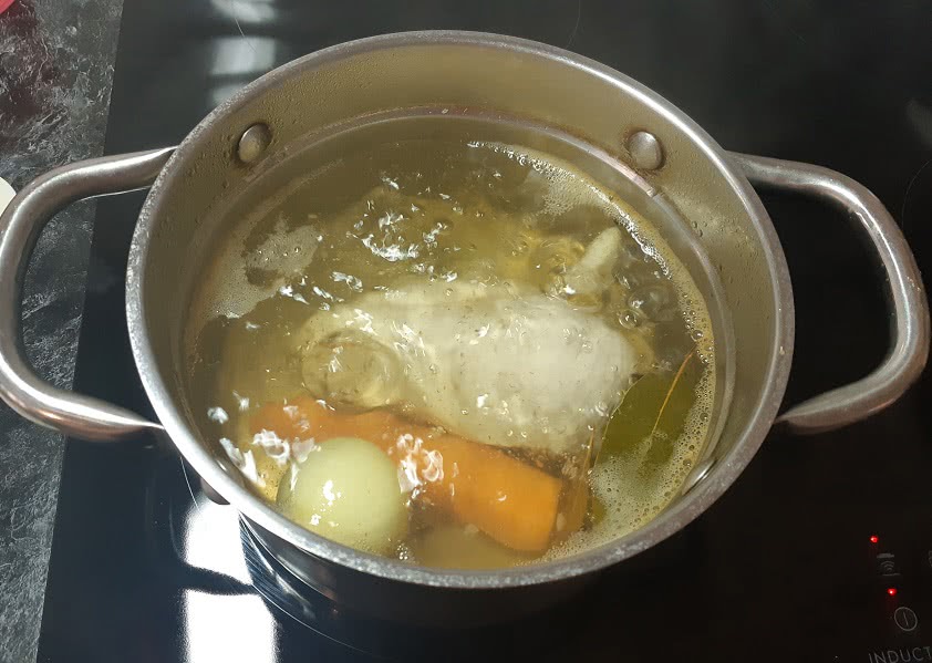 Теперь вы с легкостью справитесь с готовкой куриного мяса. Пока мясо варится, можно заняться приготовлением остальных ингредиентов.