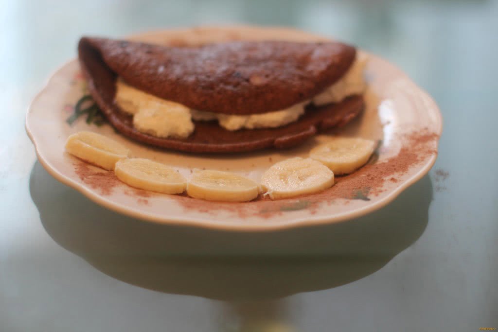 - Овсяноблин с бананом относится к категории сладких блюд, поэтому можете фруктовые кружочки внутри блинчика слегка притрусить корицей для большего аромата.