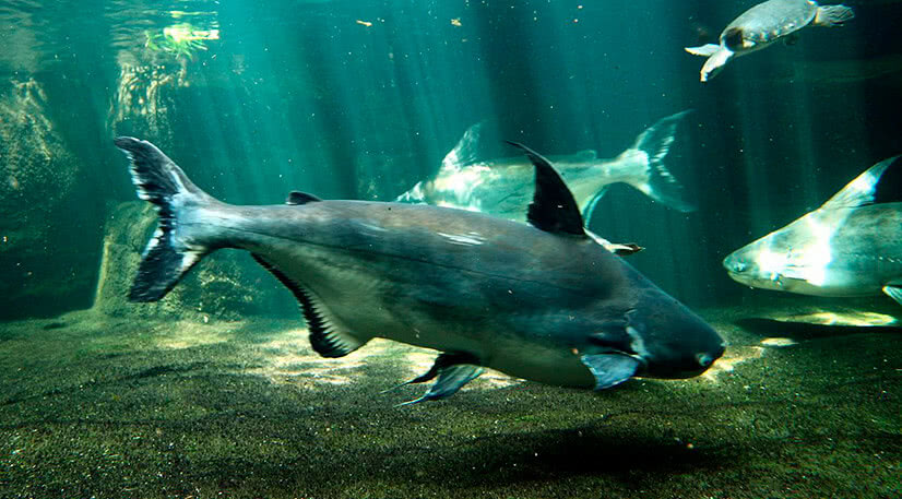 Пангасиус достигает очень большого размера и требует таких же аквариумов. Как уже говорилось, для молодежи нужно 300-400 литров, для взрослых особей от 1000. Аквариум лучше устроить так что бы он напоминал их родные реки, положить коряги.