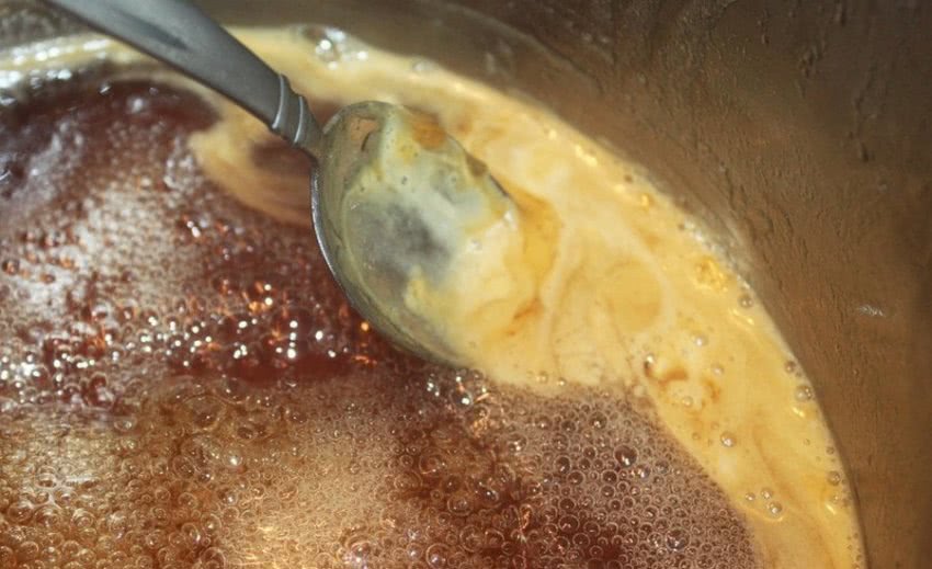 - в случае попадания воздуха пена аккуратно убирается с поверхности чистой ложкой и повторно появляться не должна;
