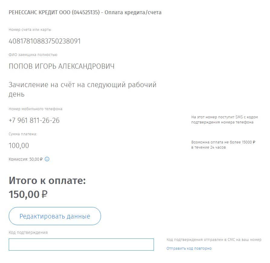 Сообщите, кто является заемщиком (ФИО), сколько необходимо заплатить, номер телефона.