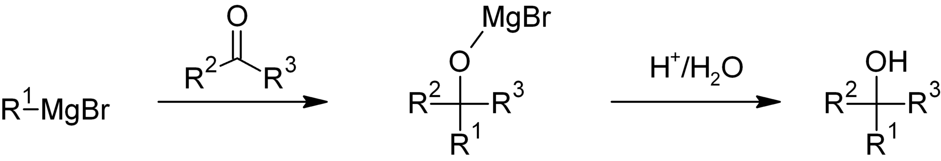 Молодой ученый уперся в те же проблемы, что и учитель, но потом его осенило: а что, если получить магнийорганику не прямо в реакции, как при реакции Зайцева, а получить промежуточное вещество заранее. И внезапно оказалось, что реакция RX+Mg = R-Mg-X (X – это галоген: хлор, бром, йод) идет в растворе очень легко, а полученные вещества идеально реагируют с кетонами и вообще с очень многими органическими соединениями. Так у органиков появился очень мощный метод для направленного органического синтеза. Им пользуются до сих пор, а вещества R-Mg-X везде, кроме Франции, получили название «реактив Гриньяра».