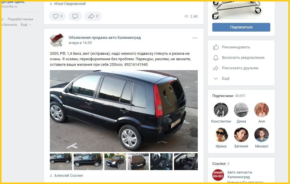 В данном случае особенно актуально будет использовать социальные сети:1) . Можно разместить объявление в бесплатных группах по продаже авто, выложить новость у себя на странице и попросить друзей сделать репост.2) . Попросите своих друзей поставить «класс» вашей записи, чтобы ее увидели другие.3) Инстаграм. Сделайте пост у себя в ленте и загрузите объявление в сторис. Это повысит охват и также увеличит количество просмотров.4) Фейсбук. Разместите пост в своей ленте с призывом сделать репост, так объявление увидят ваши друзья и помогут вам.5) Твитер. Поступите аналогичным образом – напишите твит.6) Вотсап. Здесь есть возможность создать сторис. Это также увеличит количество людей, которые увидят ваше объявление.