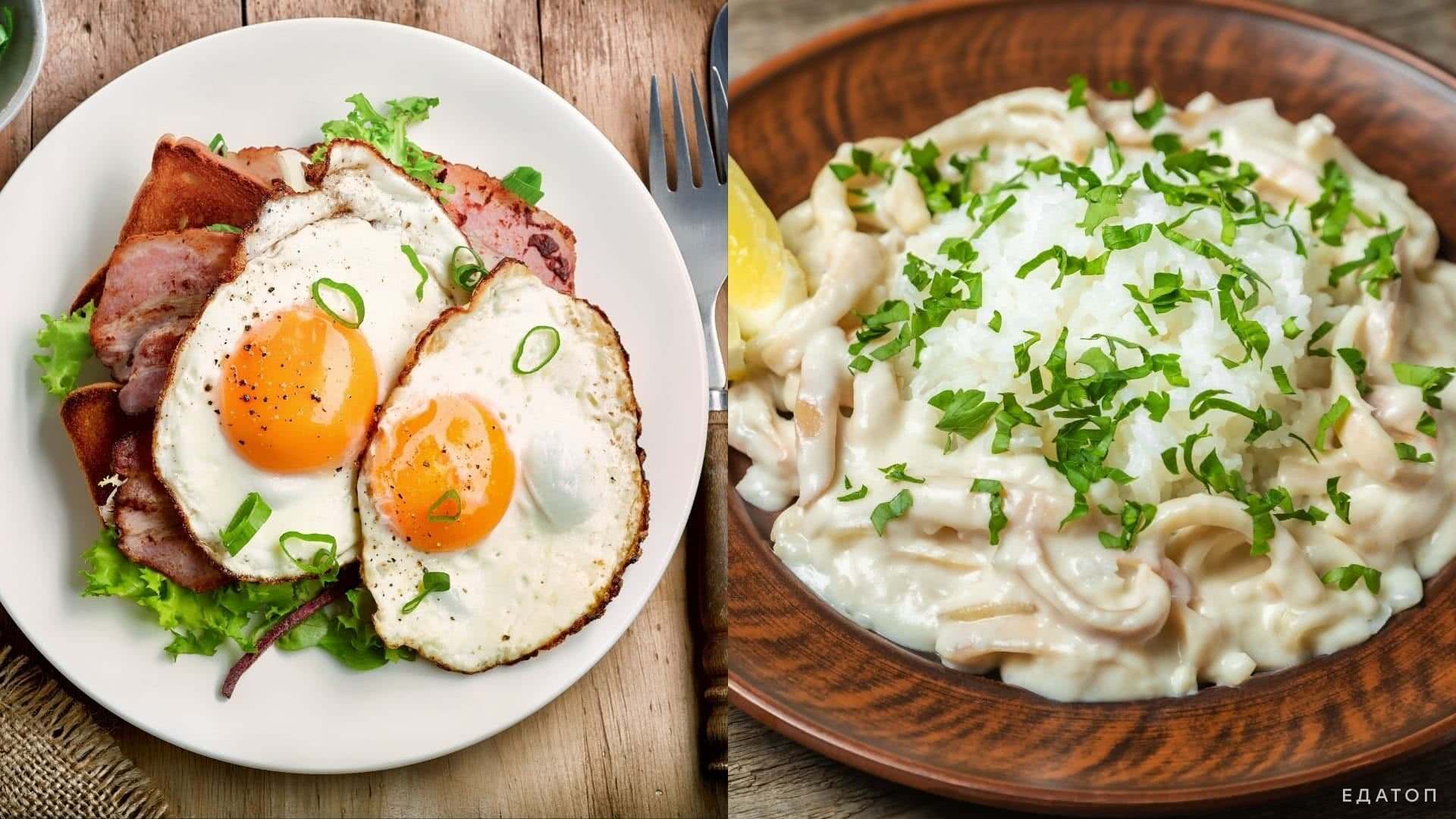 - завтрак — яичница-глазунья, бутерброды с сыром, натуральный сок;