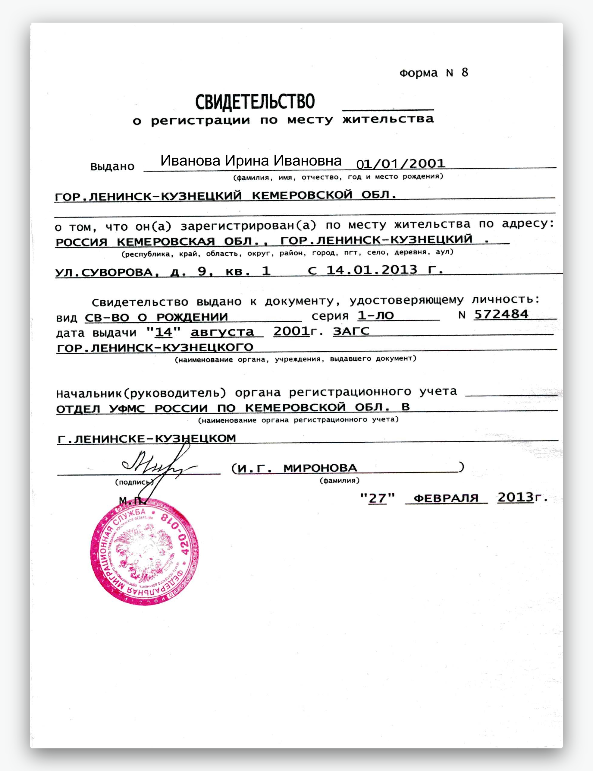 Бывает так, что у человека нет паспорта, но его возможно прописать. В этом случае, на руки выдается отдельно свидетельство о регистрации. Если вы собираетесь прописываться через МФЦ, то это займет от 4 до 8 дней.