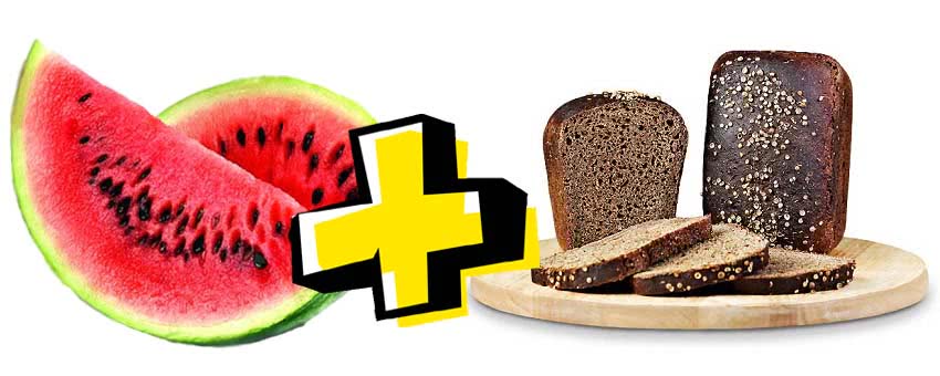 Сочетание арбуза с углеводами помогает легче переносить ограничения в питании. В течение него почти не ощущается чувство голода, снижается эмоциональная нагрузка из-за ограничения в питании. Хлеб должен быть отрубным или ржаным. Потребуется 150 г, которые надо разделить на 3 порции и съесть в течение дня, чередуя с мякотью арбуза.