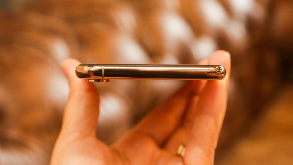 Кнопка питания/блокировки находится на правой стороне XS Max, и ее достаточно легко нажать большим или указательным пальцем, а кнопки громкости располагаются слева, под переключателем бесшумного режима.