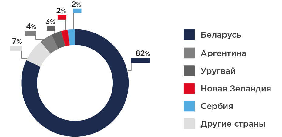 Рис. 9. Страны – крупнейшие поставщики молочной продукции в Россию в 2018 г.