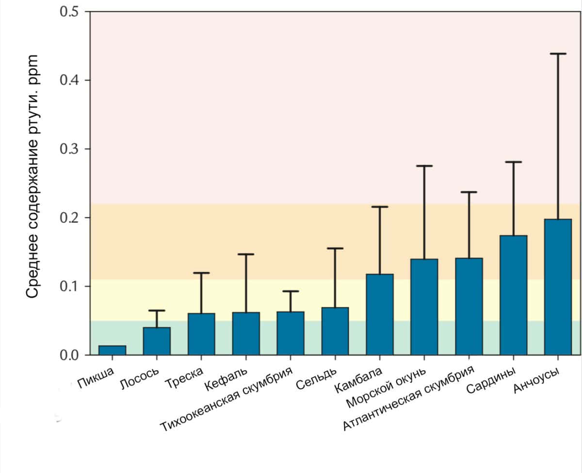 Хотя в любой рыбе есть ртуть, от нее не нужно отказываться полностью. Рыба — источник белка, витаминов и жирных кислот, необходимых для профилактики сердечно-сосудистых заболеваний. Просто стоит выбирать ту, в которой ртути настолько мало, что она не навредит организму.