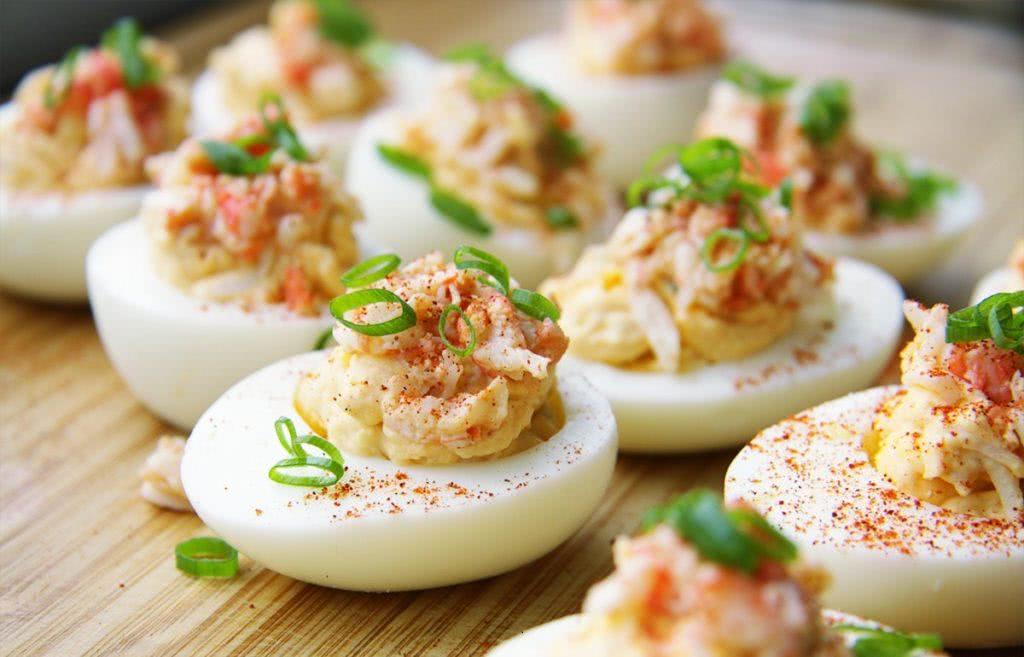 - Полученной массой наполнить половинки белка, чтобы она небольшой горкой выступала за края.