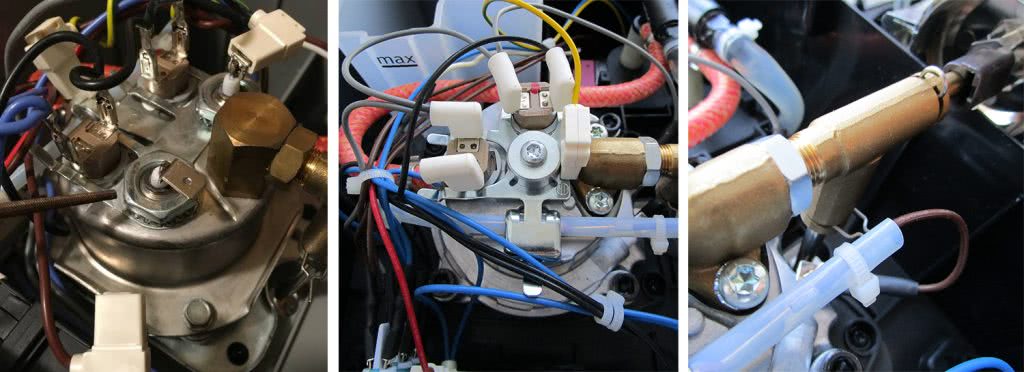 Even the cheaper versions of the Poemia with plastic parts and the aluminium boiler are very well assembled. Just look at the photo above: all O-rings are well tightened, the steam wand tubes and regulators are made of copper, and all the heated parts have thermal isolation.