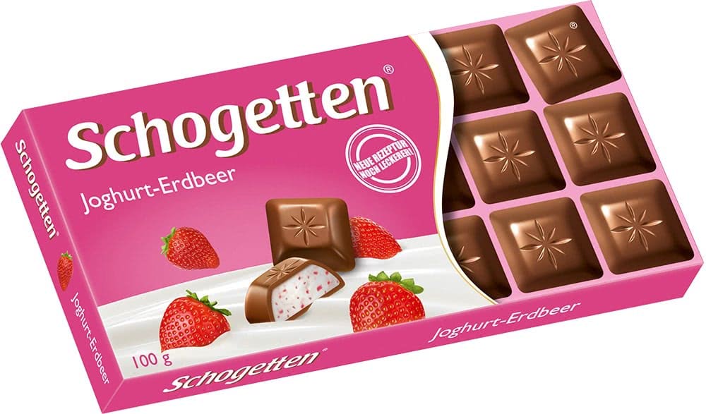 Линейка лакомств Schogetten представлена всеми видами шоколада — белым, молочным и черным. Помимо этого, в ассортименте продукции присутствуют как традиционные сладости, так и с различными наполнителями, поэтому каждый сладкоежка сможет выбрать идеальный для себя десерт, который будет полностью соответствовать его гастрономическим предпочтениям. Большой популярностью во всем мире пользуется лакомство, которое называется Trilogia. Оно сочетает в себе все три вида шоколада, благодаря чему оно придется по вкусу абсолютно всем людям. Всего же в ассортименте кондитерских изделий представлено 15 типов сладостей.