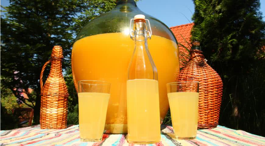 Нужно отжать фреш и отстоять, не охлаждая. Затем отфильтровать его в банку и закрыть гидрозатвором. Таким способом он настаивается примерно 1,5 месяца. После брожения перелить сок в бутылки. Сделать это нужно аккуратно, чтобы осадок не попал в сок. Настаивать смесь до полной готовности еще около 4-х месяцев.