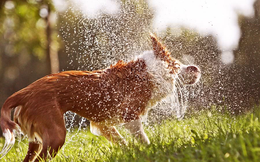 Хозяева очень активных псов всегда носят с собой распылитель с водой. Чтобы при случае легко охладить пыл любимца.