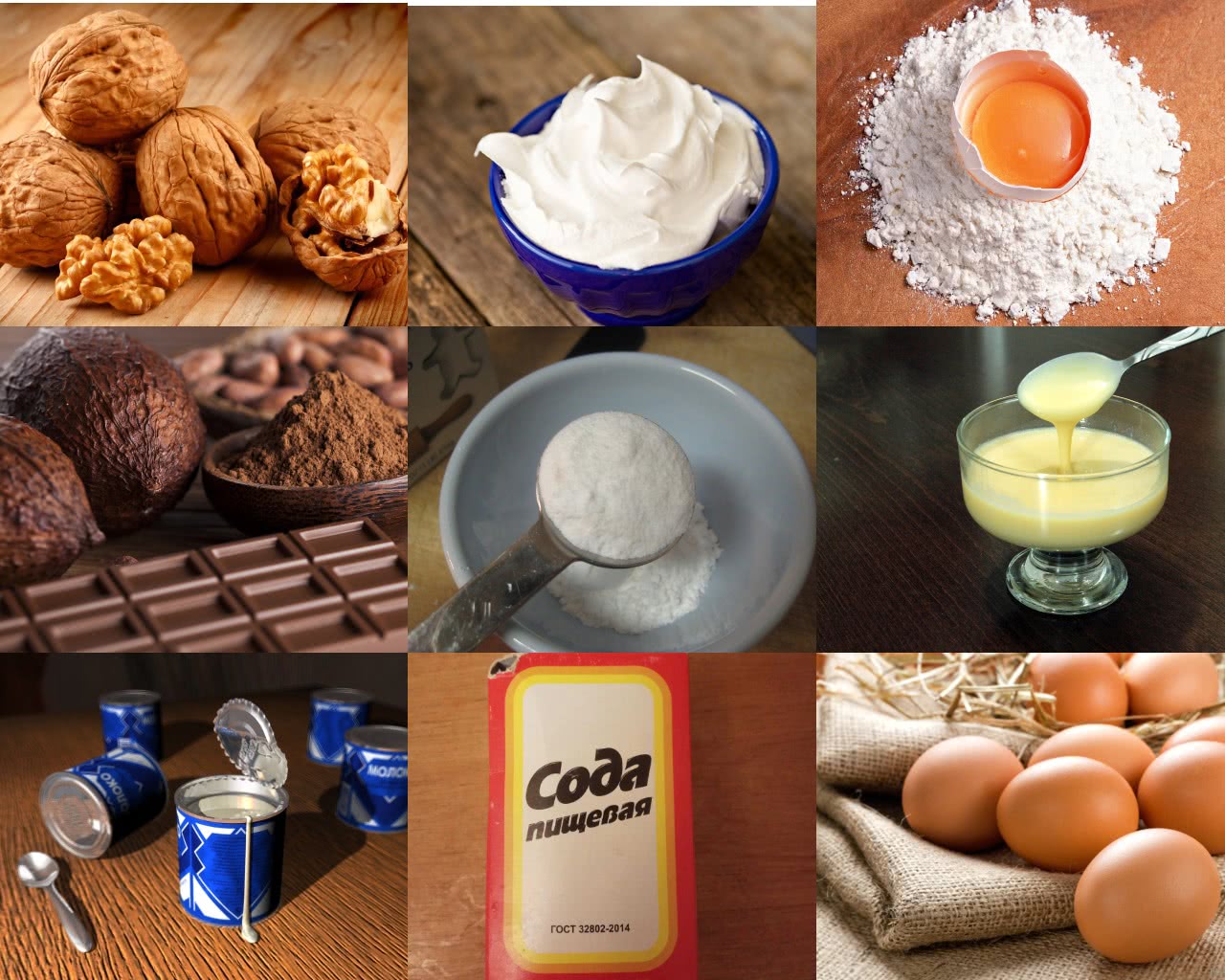 Для приготовления орехово-шоколадного торта потребуются такие ингредиенты для теста: