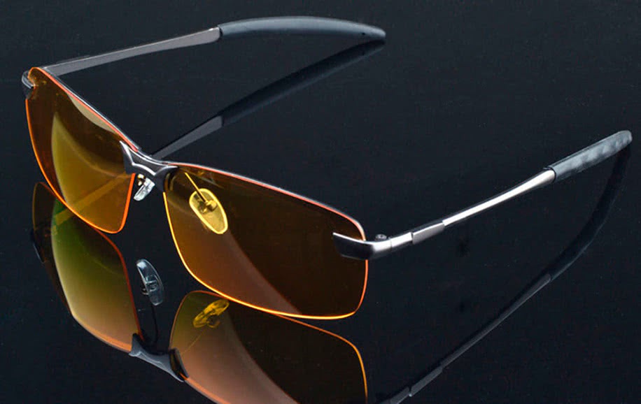 Очки с поляризационным эффектом можно использовать не только ночью, но и днём при слишком ярком солнце. В отличие от обычных солнцезащитных очков ночные очки имеют многослойные фильтры.