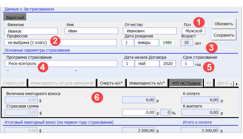 Полисы с анализом риска рассчитываются иначе. Для своих консультантов страховщики выпускают софтверные калькуляторы рискового страхования жизни. И помощью этих программ специалист по страхованию рассчитывает стоимость полиса.