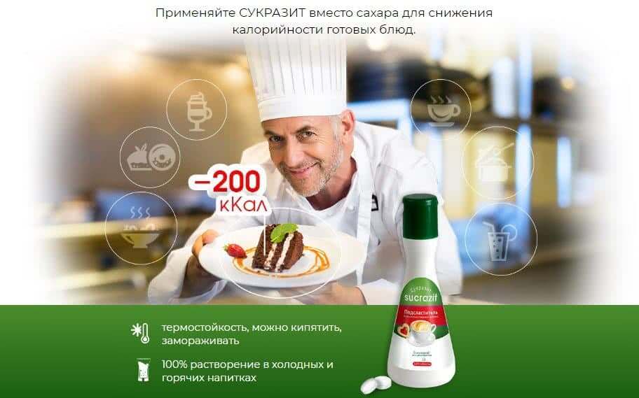 Кроме этого, если верить официальному сайту производителя, в небольшом количестве различные формы Сукразита имеют в составе пищевые добавки для вкуса – сукралозы и аспартама, а также витамины и минералы. Калорийность почти равняется нулю.