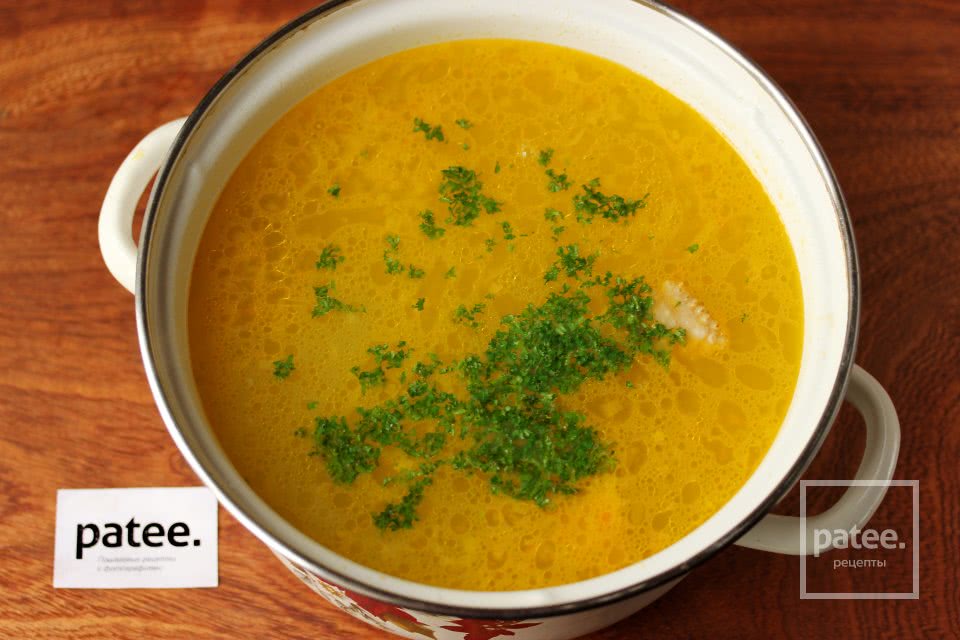 Доводим суп до кипения и варим на меленном огне около 7 минут.