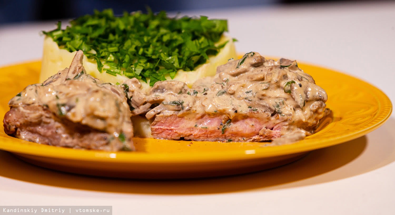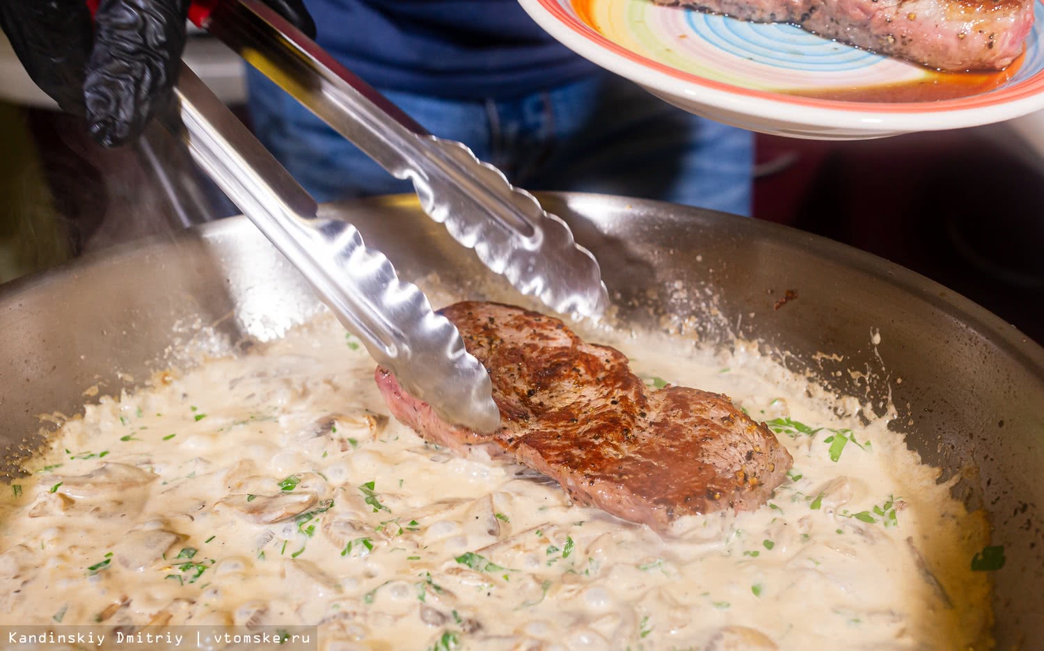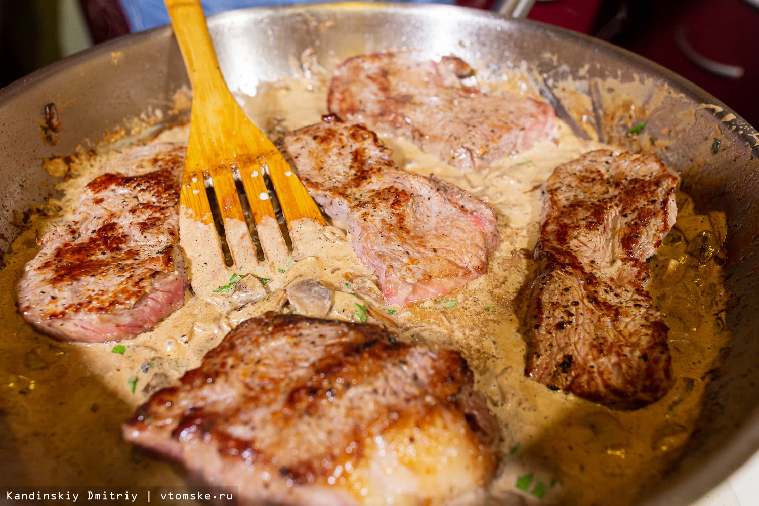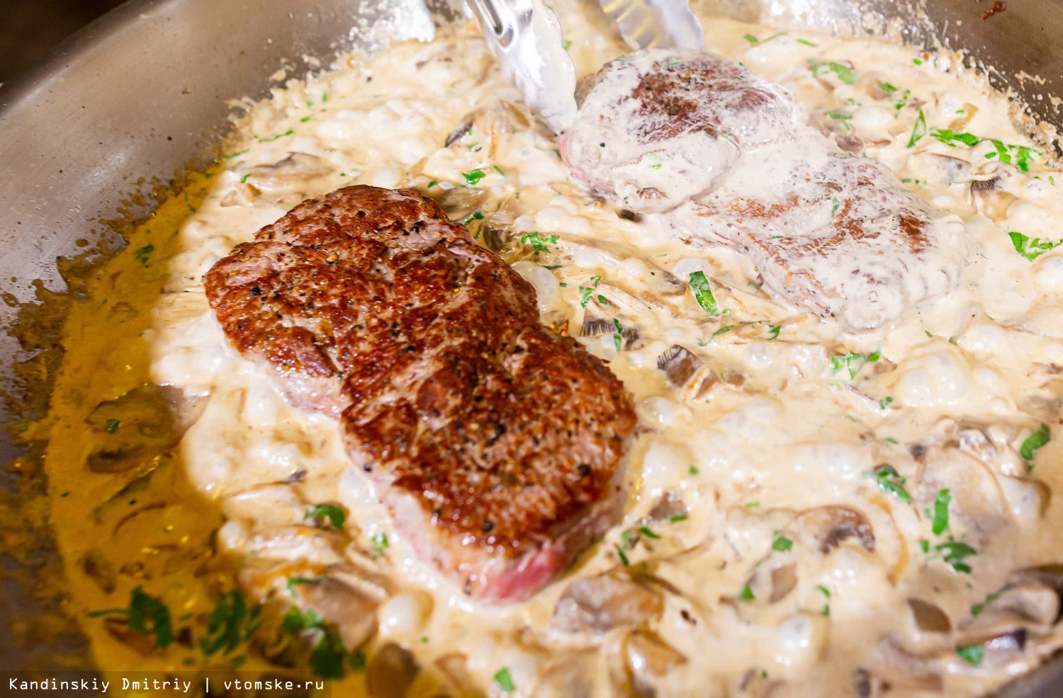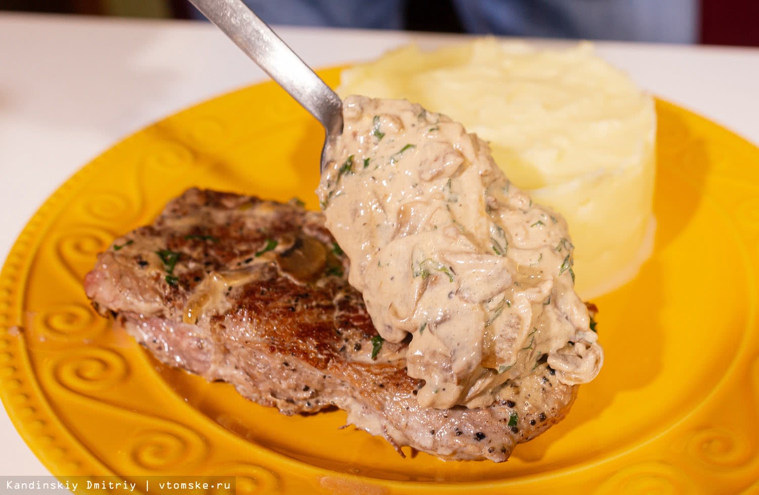 Время приготовления в моем варианте подходит для стейков средней прожарки. Если вы брезгуете розовым мясом, то можете в 1,5 раза увеличить тушение мяса в соусе — так оно получится полностью готовым.