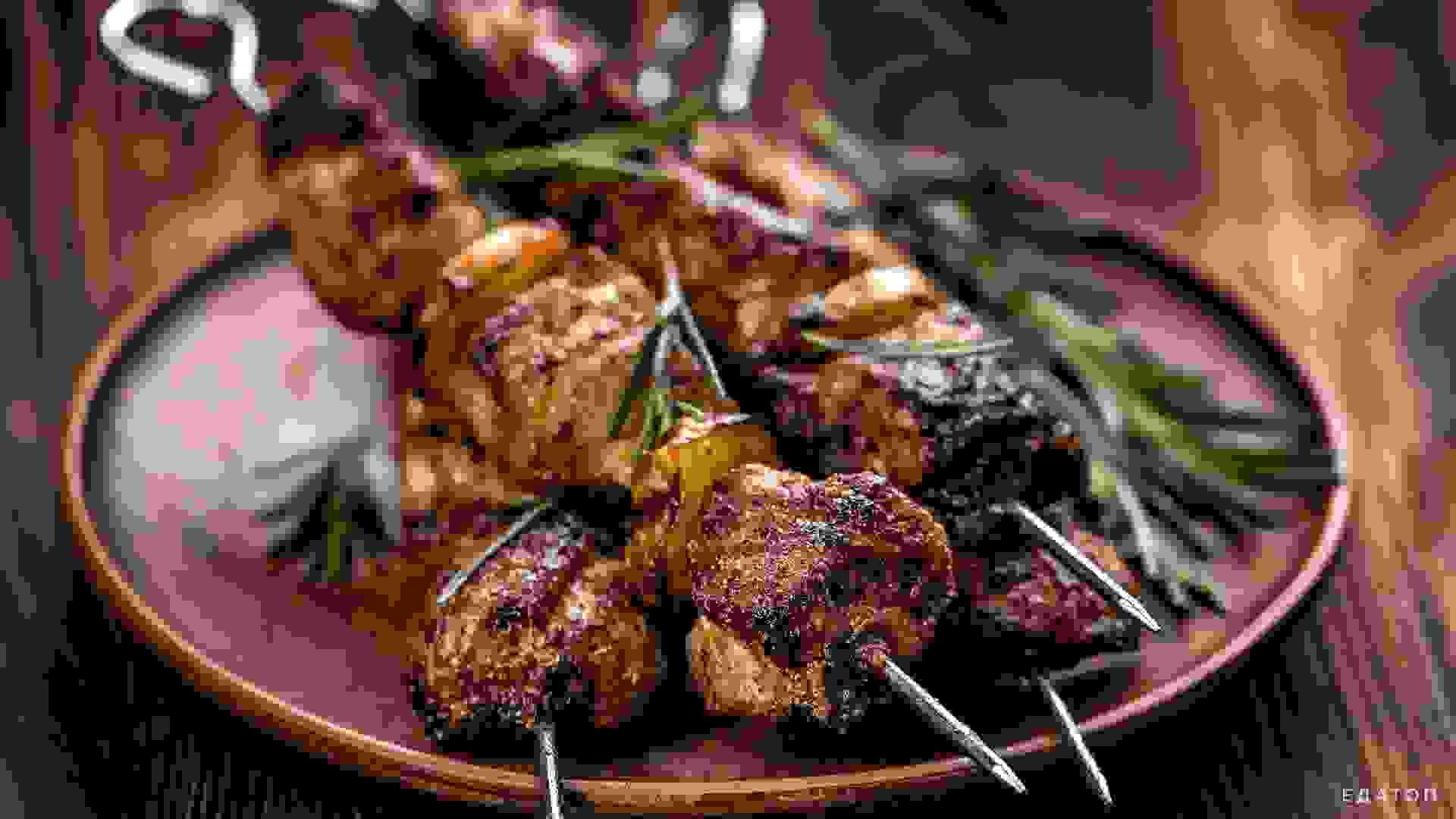 Иногда для шашлыка выбирают курицу, печень и овощи. Он может быть молотый (из рубленого фарша) и кусковой. Любое мясо обязательно маринуют перед приготовлением. Для этого используют кефир, лимонный сок, гранатовые зерна, лук.