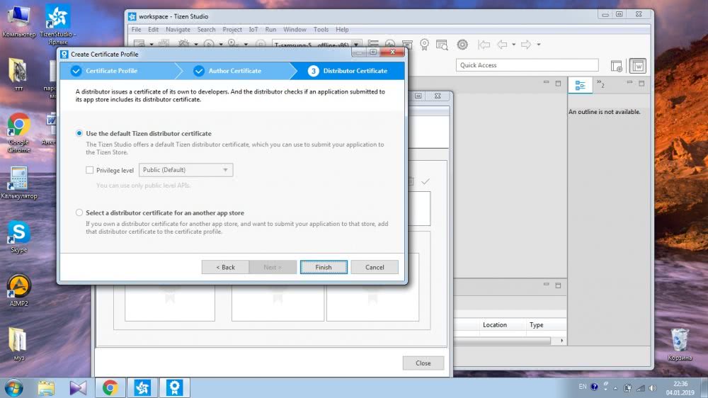 - Выбираем тип сертификата – «Tizen» (второй способ предполагает выбор варианта «Samsung», затем нужно отметить пункт «TV»).