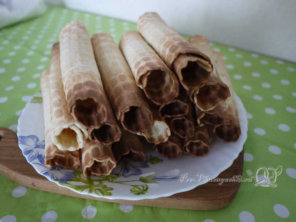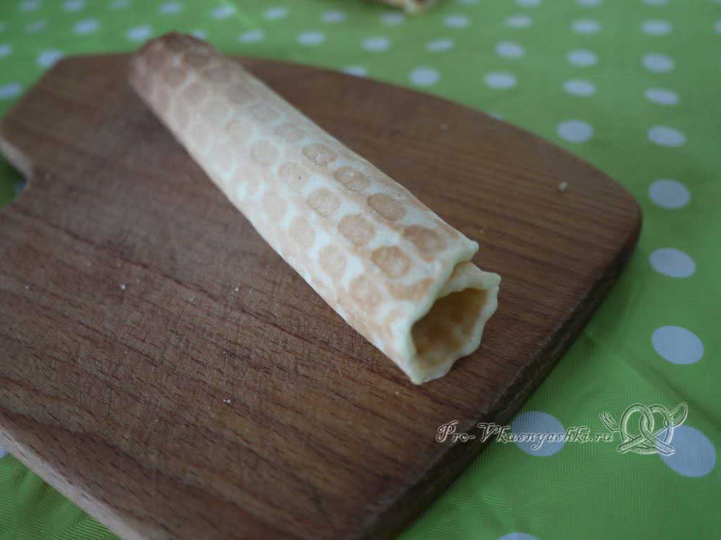 - Готовые вафельные «кулечки» складываем на тарелку.