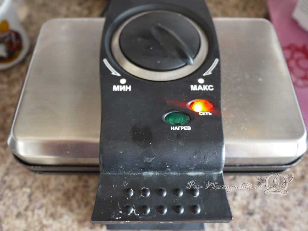 ВажноВсе вафельницы разные. Возможно, пластины вашего прибора нужно будет слегка смазать растительным маслом при выпекании первого изделия.. Печем каждую вафлю примерно 2-3 минуты