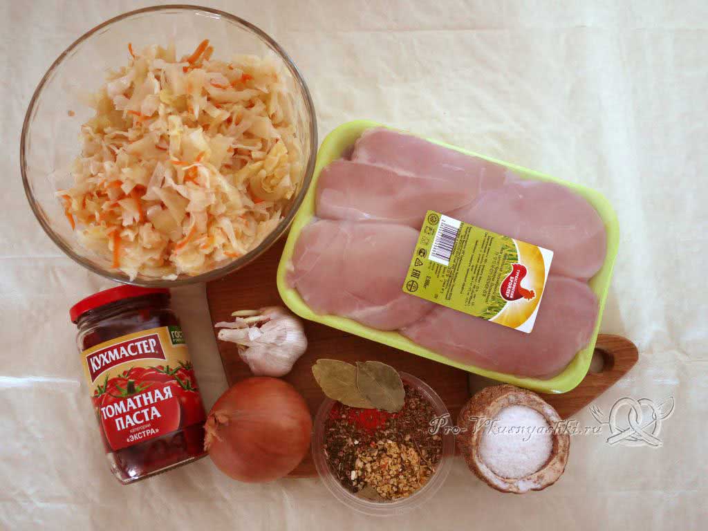 Вариант 5: Квашеная тушеная капуста с курицей в мультиварке