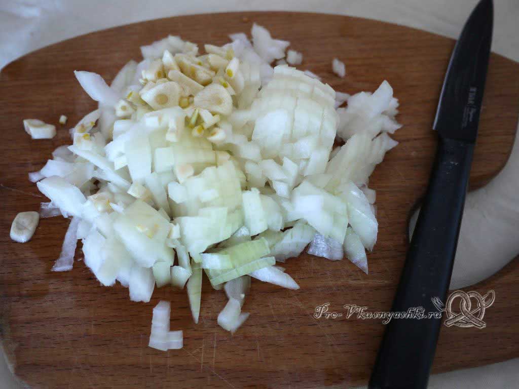 Лук нарезаем мелким кубиком.