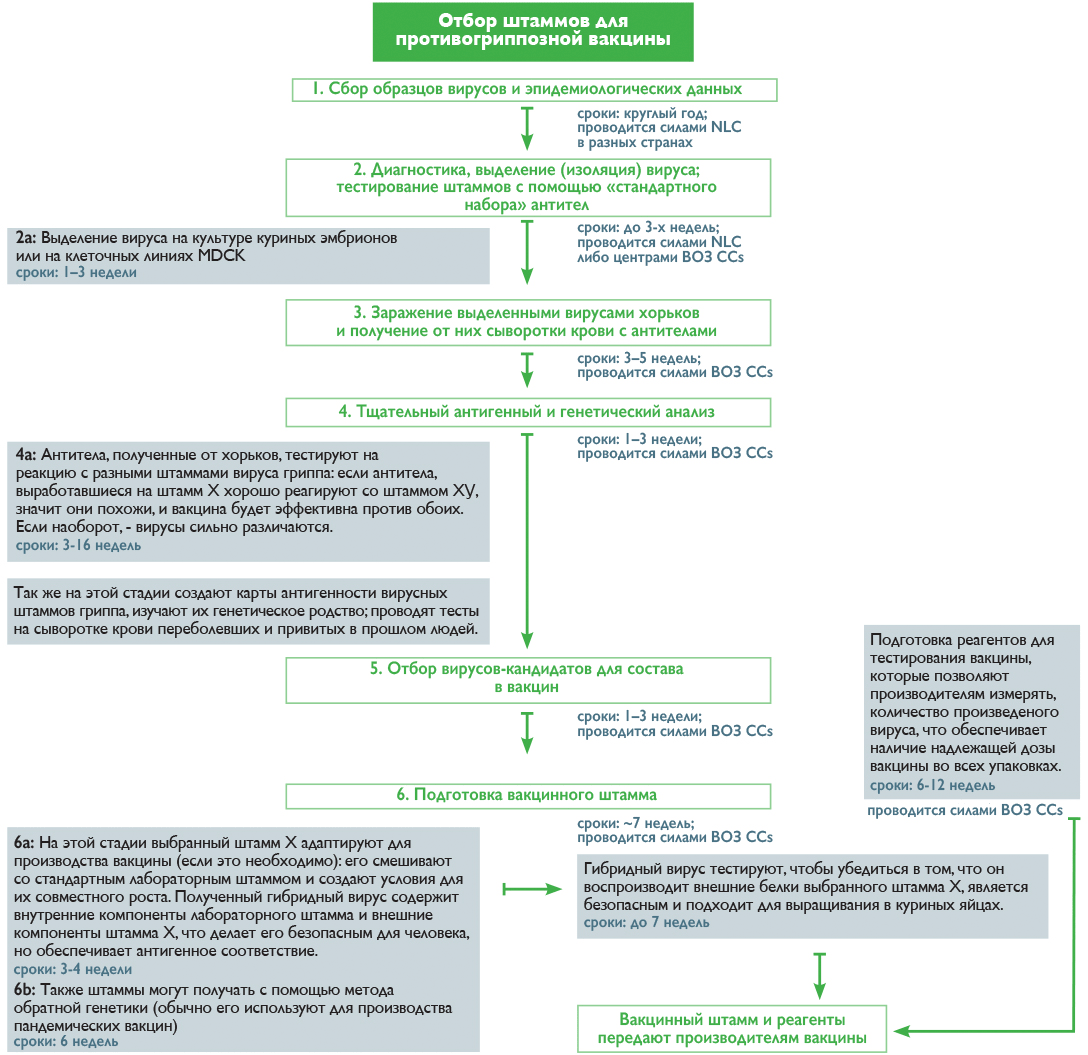Если в двух словах описать процесс выбора штаммов для состава вакцины, это будет игра в «угадай штамм» (что, впрочем, сильно отличается от «ткни пальцем в небо»). Процесс «угадывания» достаточно сложен и требует отлаженной работы глобальной системы надзора за гриппом под эгидой ВОЗ — Global Influenza Surveillance and Response System (GISRS). В нее входят более 100 национальных центров по гриппу (NICs), находящихся в разных странах.