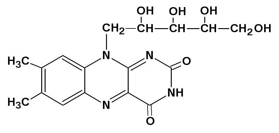 Кислота тоже не опасна для состава рибофлавина, он к ней устойчив. А вот щелочи для вещества губительны, они полностью разрушают формулу. Б 2 — водорастворимый элемент, но плохо растворяется в растворах, содержащих этиловые соединения. В бензоле, хлороформе, ацетоне Б 2 не растворяется совсем. Состав молекулы флавина способен к обратному восстановлению после присоединения водорода.