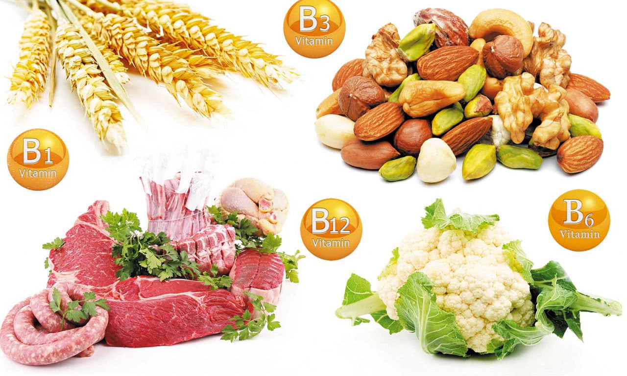 Можно выделить следующие группы продуктов богатых витаминами В: рыба, мясо, птица, яйца, молочная продукция, бобовые продукты, злаки, фрукты и зелень. В таблицах можно увидеть, что ряд продуктов характеризуется высоким содержанием витаминов группы В, к ним относятся злаки, молоко и его модификации, а также мясо, его субпродукты, куриное мясо и рыба. Витамин В12 можно получить только из животной пищи, больше всего его содержится в говяжьей печени.