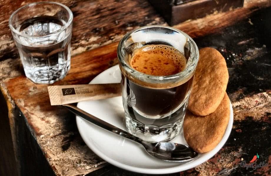 В северных городах страны, как Рим или Милан, не принято подавать воду с кофе. На юге, на Сицилии воду подают для утоления жажды перед кофе. Если посетитель пьет воду после чашки кофе, то бариста будет ранен в самое сердце. Потому что это может означать, что кофе получился плохим и он смыл послевкусие.