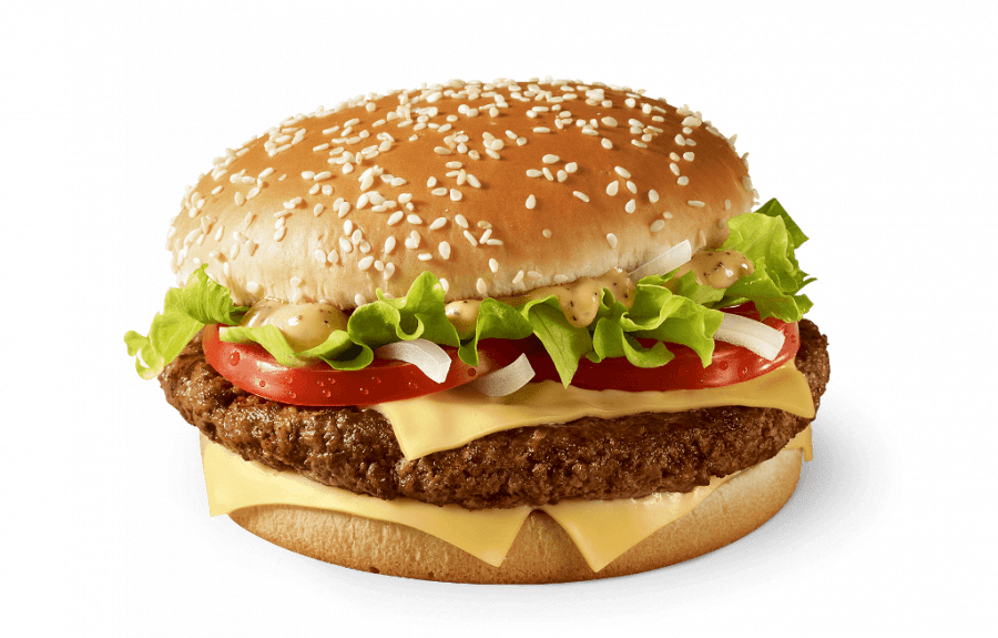 Как и в других гамбургерах основой служит свежевыпеченная булочка с кунжутом. Котлета изготовлена из чистого рубленого говяжьего мяса без каких-либо добавок. В состав вошли такие ингредиенты: сыр Эмменталь, свежие листья салата, нарезанный помидор и репчатый лук, а приправлено все соусом «Гриль». Энергетическая ценность данного блюда – 828 ккал. Его можно приобрести в сети Mcdonalds за 237 рублей.