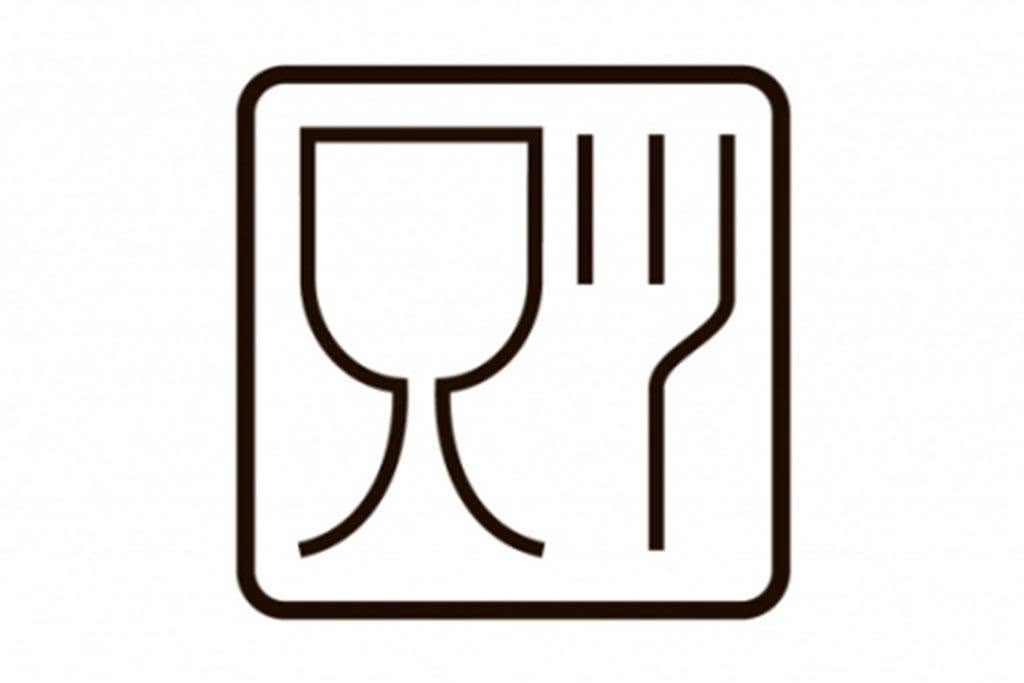 Говорит о пригодности посуды к соприкасанию с едой. Если такой значок отсутствует или зачёркнут, упаковка не предназначена для пищевых целей. Зачастую вместе с «рюмкой-вилкой» также указывают значение крайней допустимой температуры.